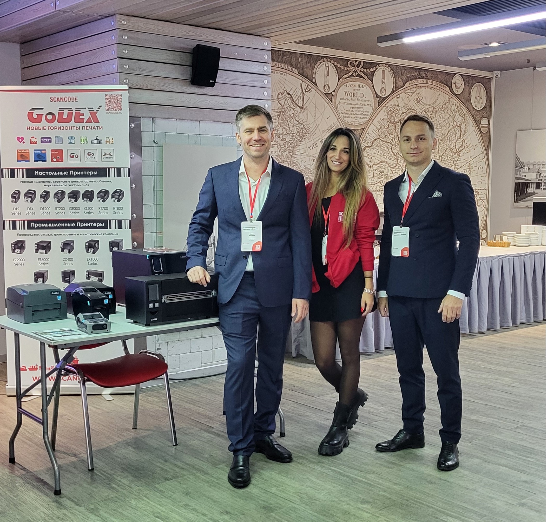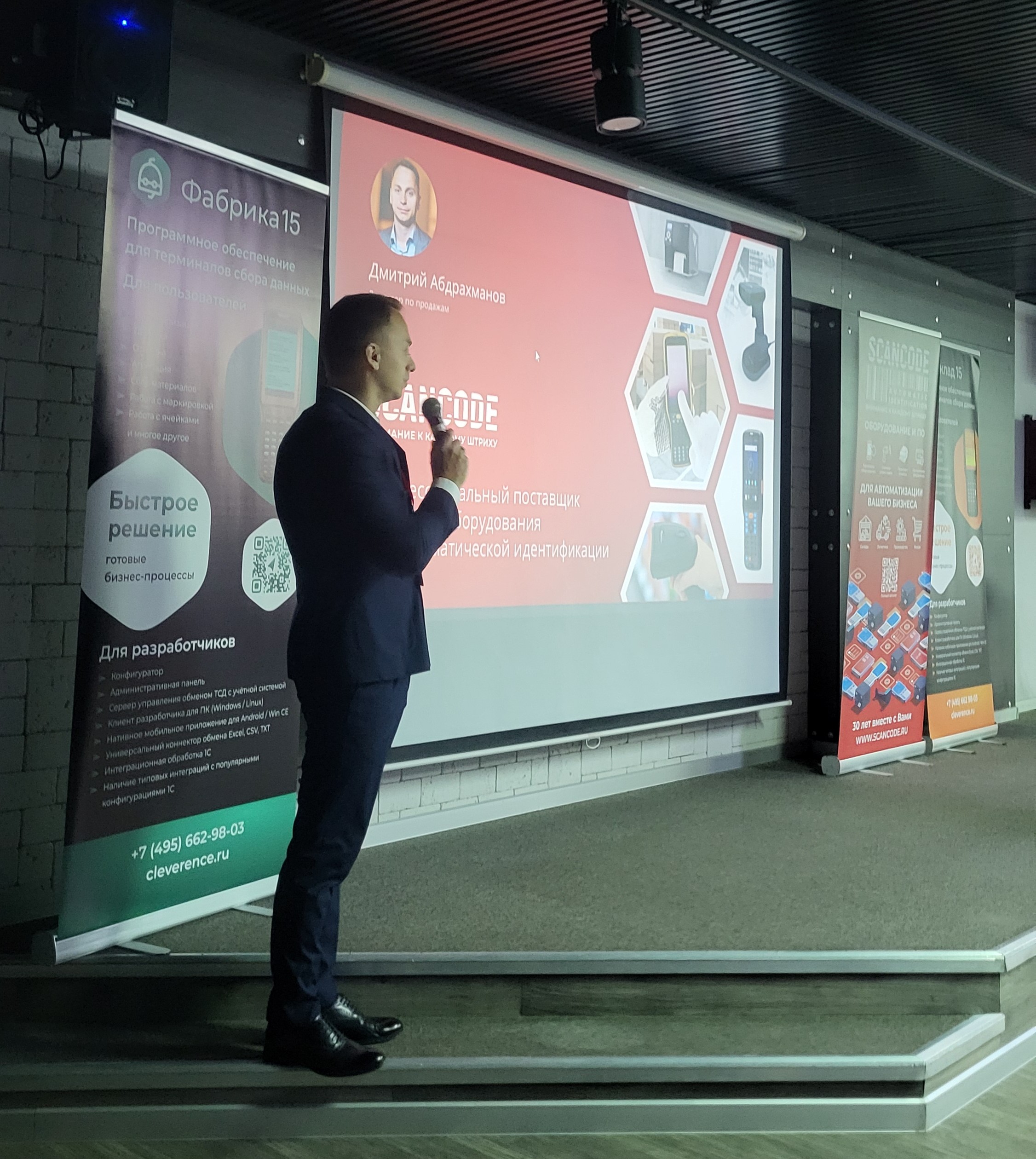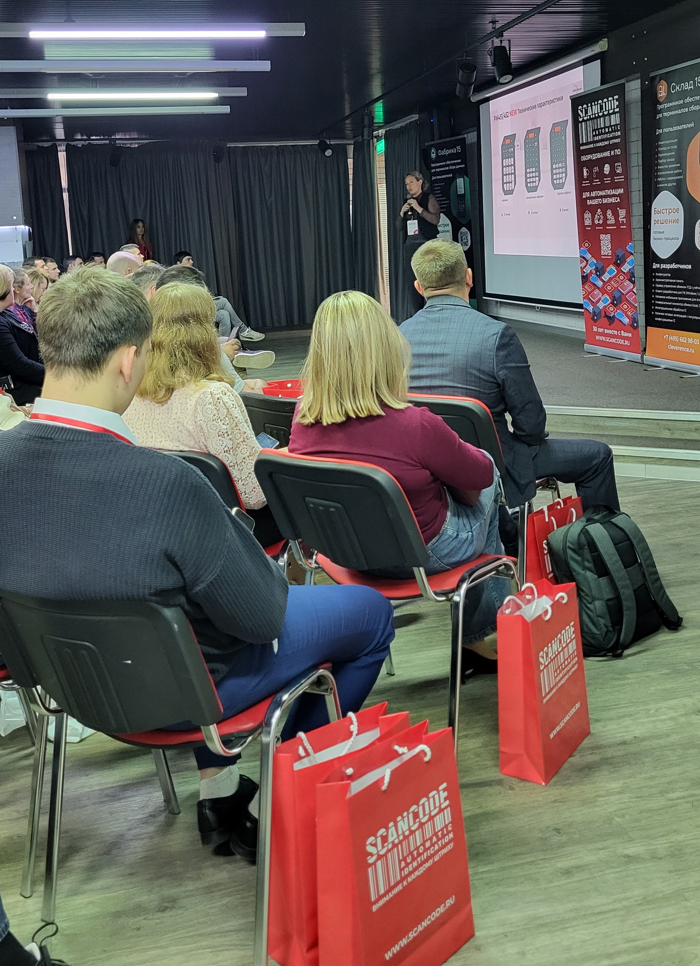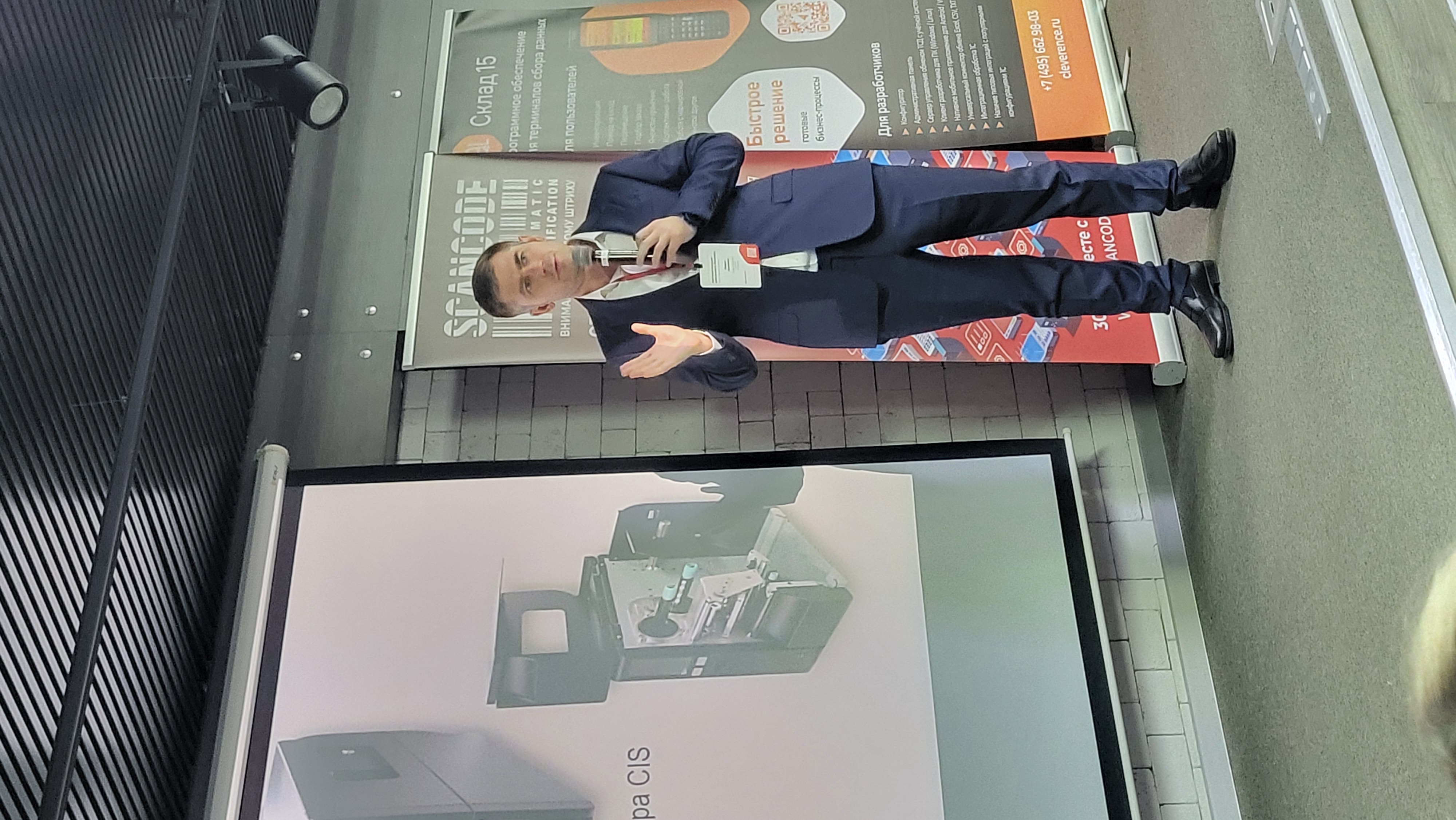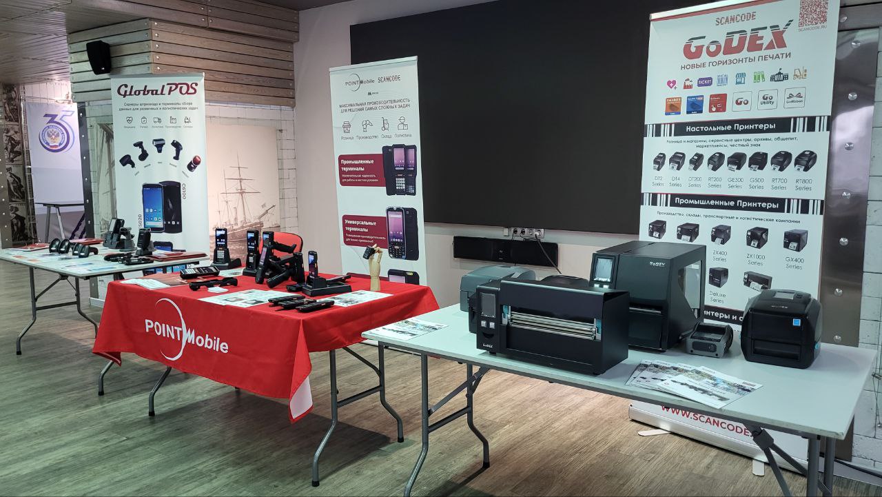 Со вступительным словом от Сканкода выступил директор по продажам Дмитрий Абдрахманов, а также представители наших вендоров: Любовь Беляева от Point Mobile и Борис Архипов от GoDEX.