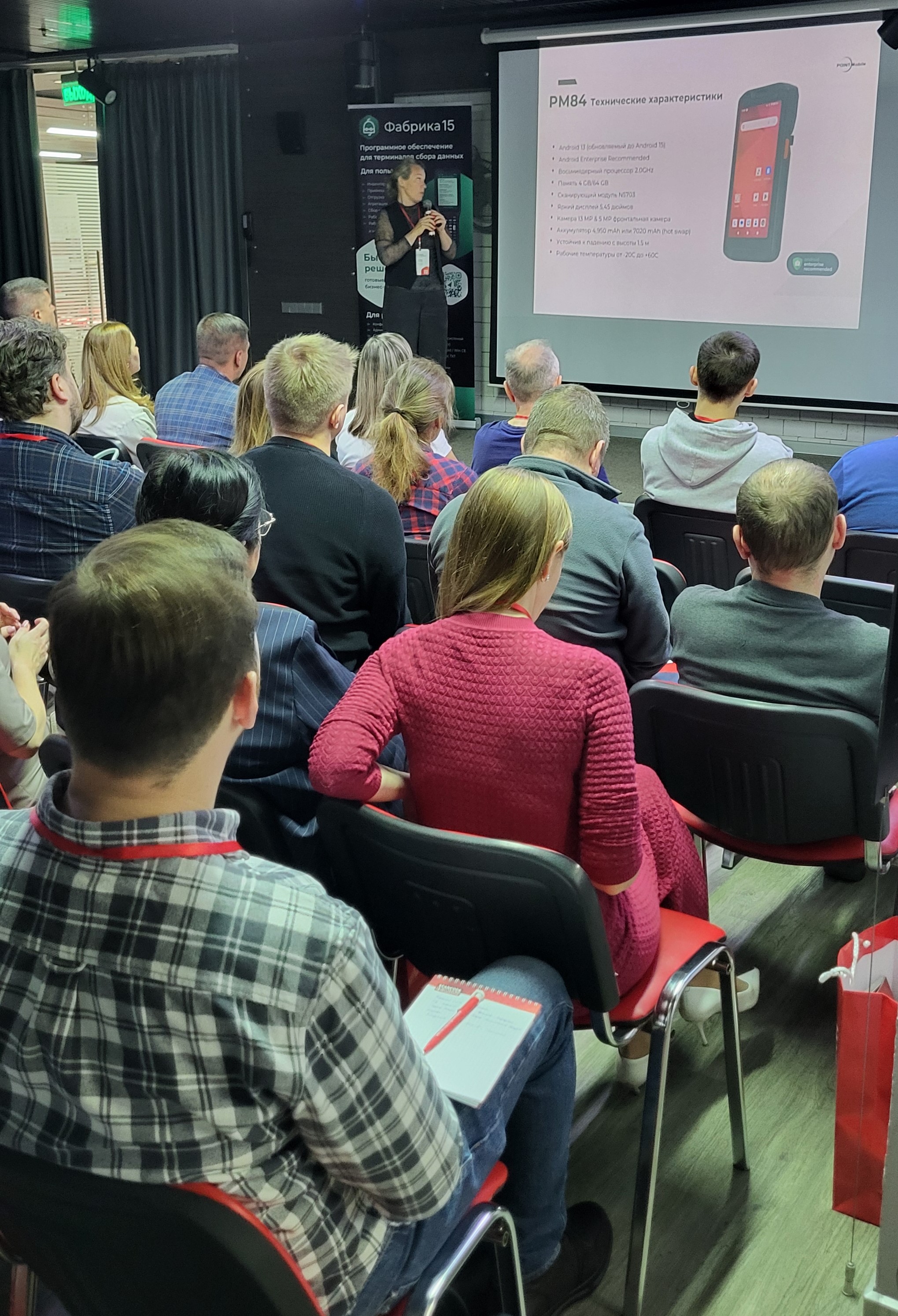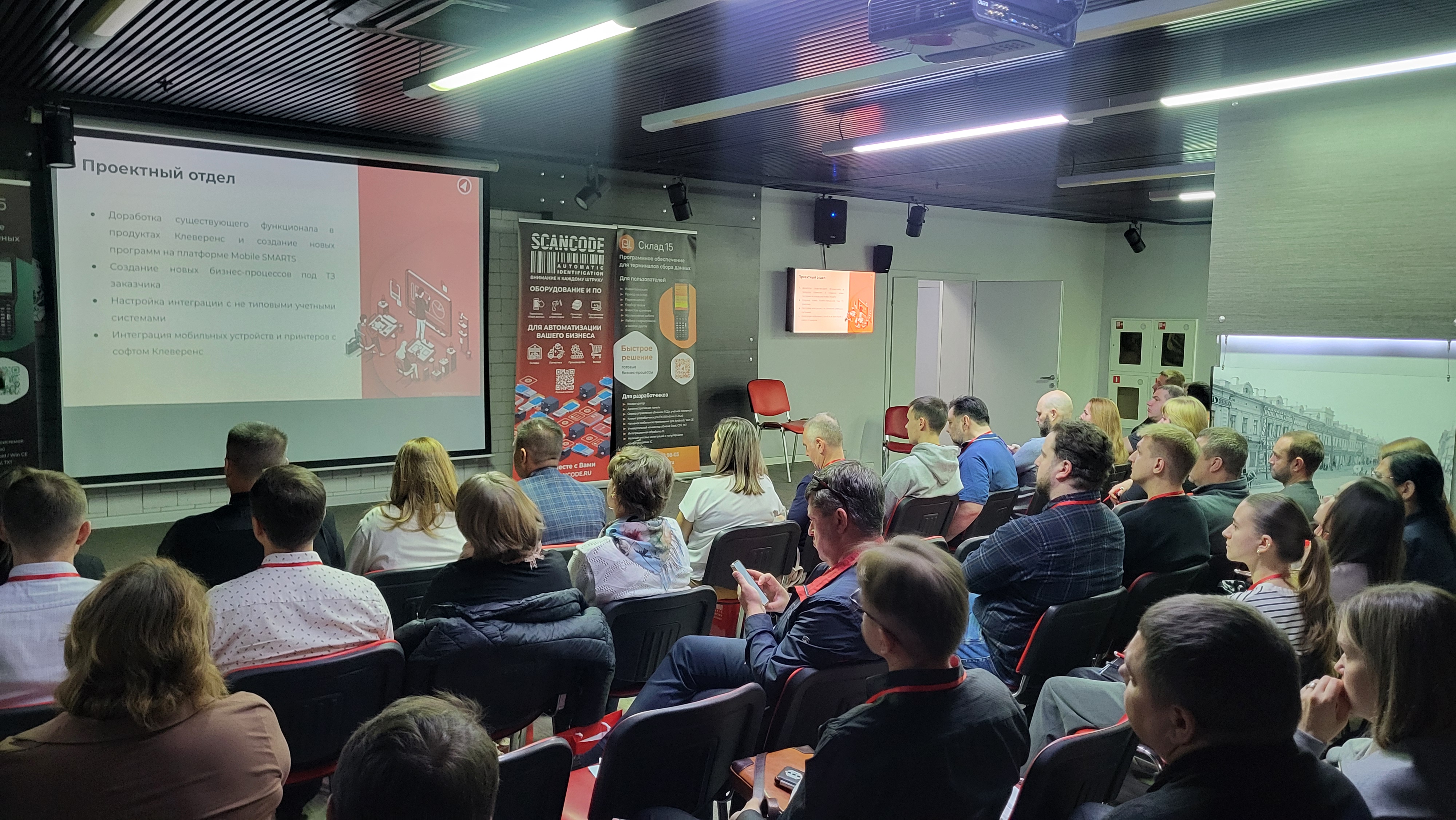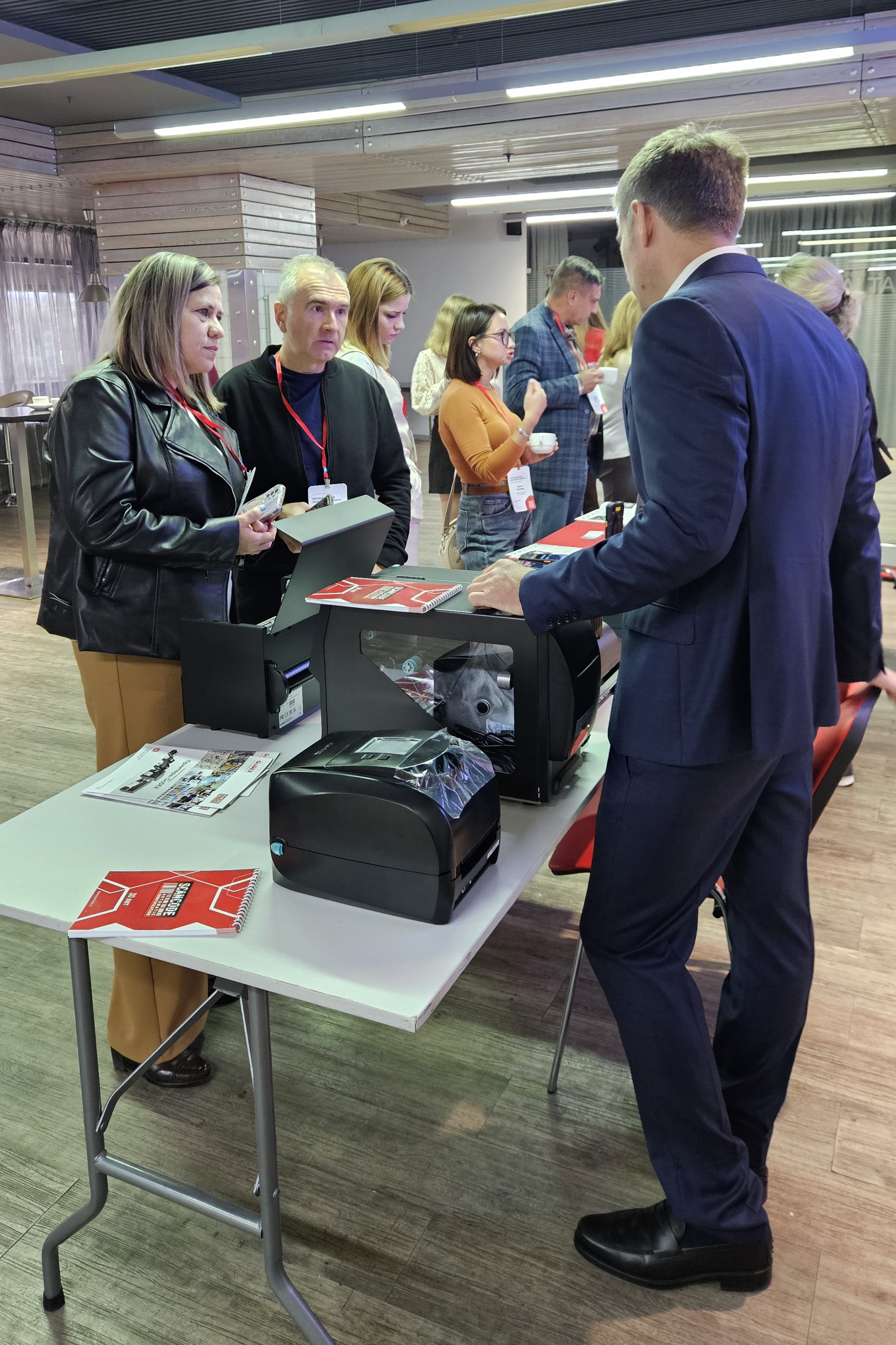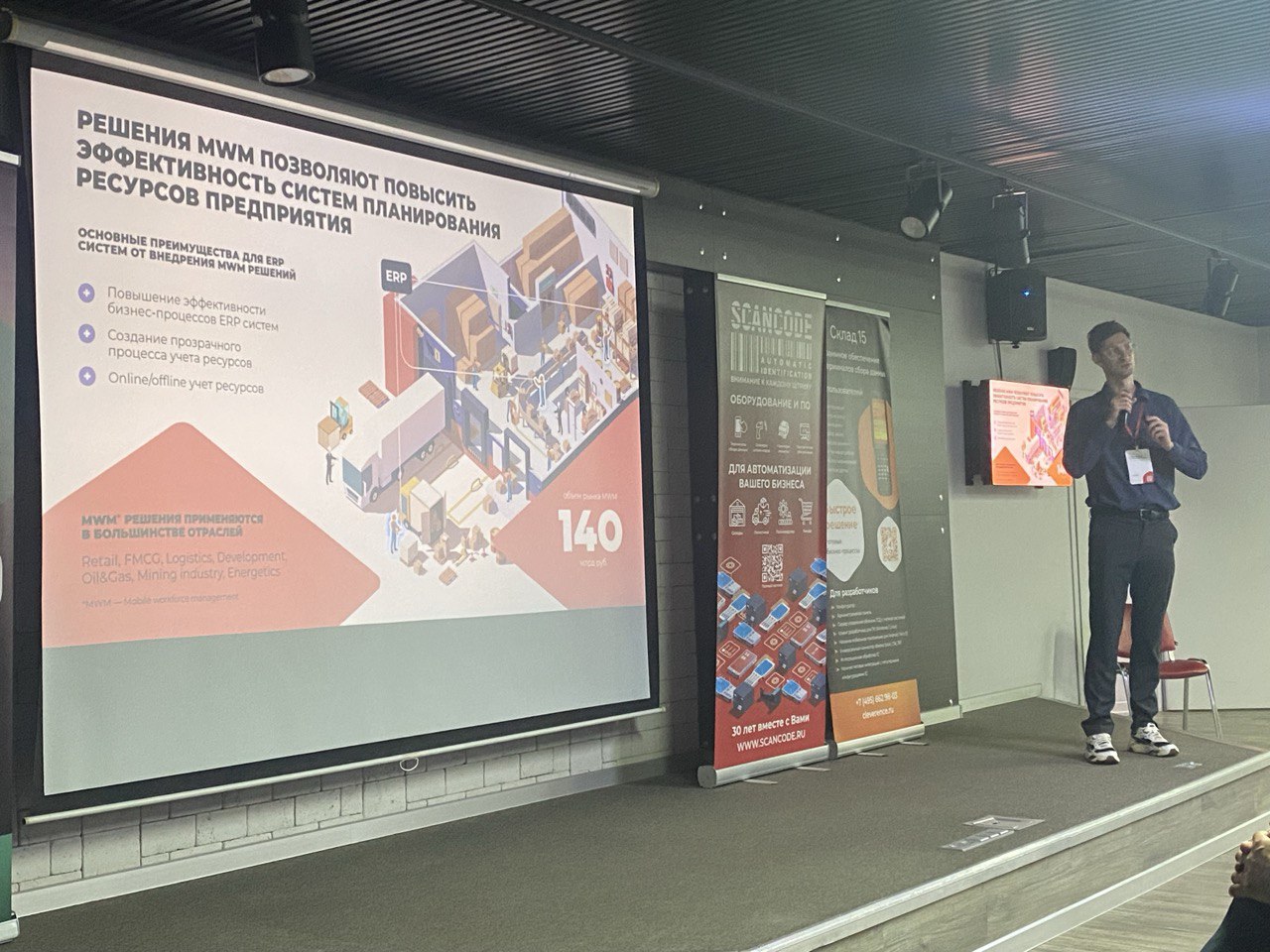 Со вступительным словом от Сканкода выступил директор по продажам Дмитрий Абдрахманов, а также представители наших вендоров: Любовь Беляева от Point Mobile и Борис Архипов от GoDEX.