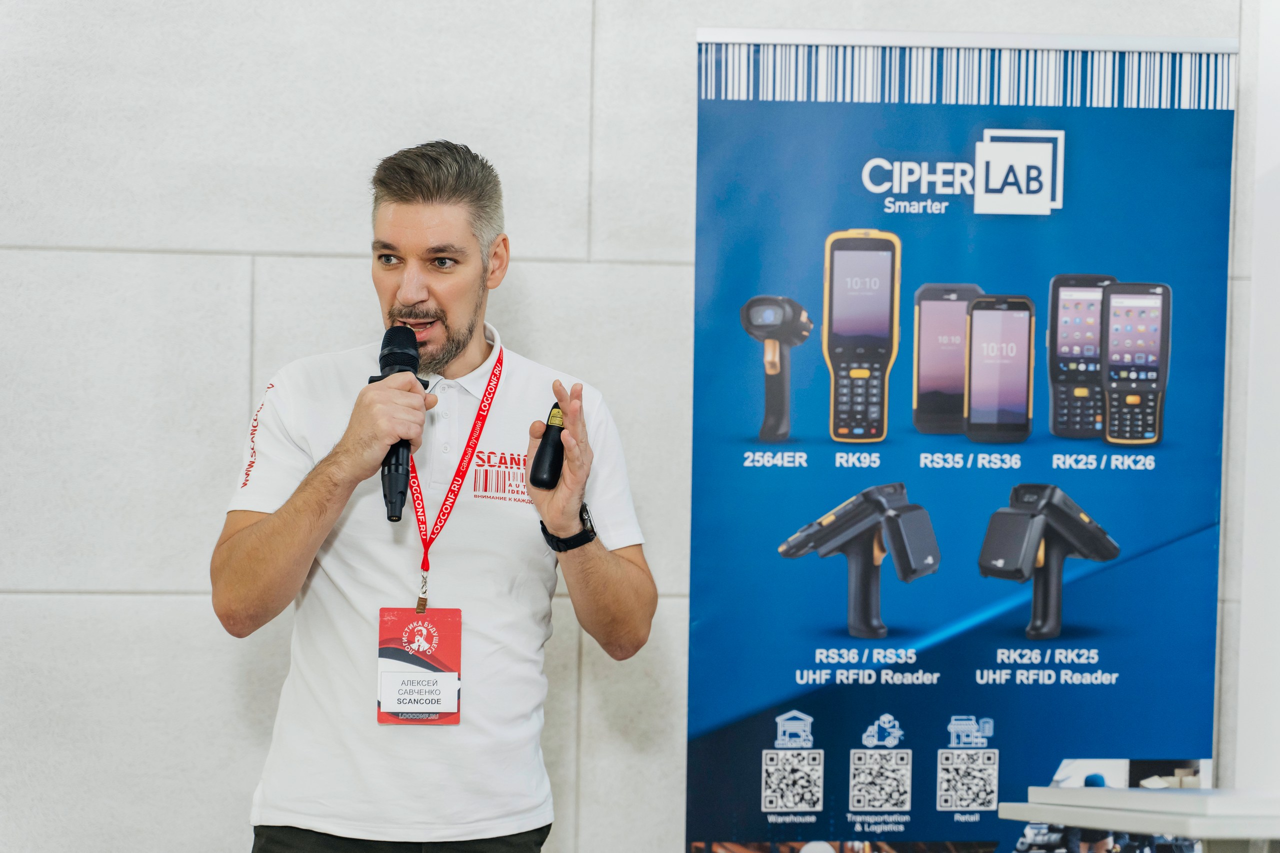 На мероприятии выступили профильные эксперты с реальными кейсами, поговорили о роботизации и автоматизации складов, обсудили подбор оборудования под конкретные задачи бизнеса. Компанию СКАНКОД с презентацией представил Алексей Савченко, - менеджер по работе с ключевыми партнерами.